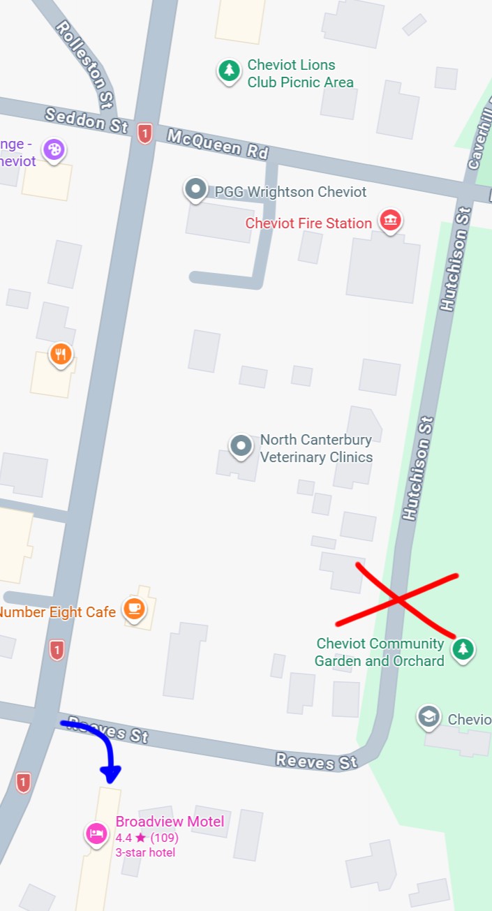 We are located at the southern end of Cheviot township, the large red brick motel on your right when coming from Christchurch on state highway one.